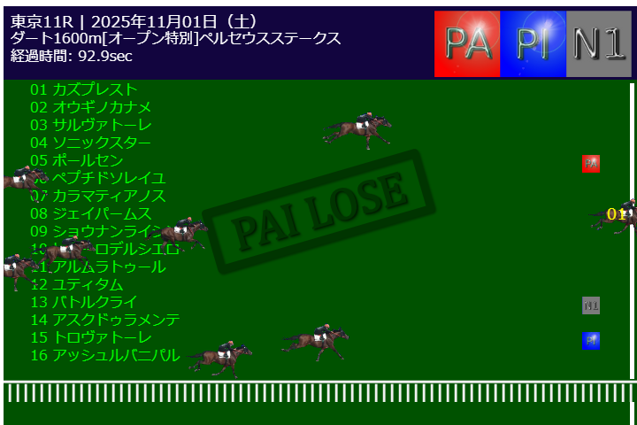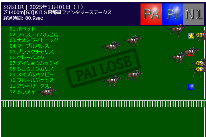 ご注意:画面はゴール通過時の着差をイメージ化したものであり、その内容を保障するものではありません。確定情報については必ず主催者発表のものをご確認ください。