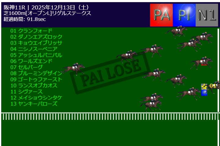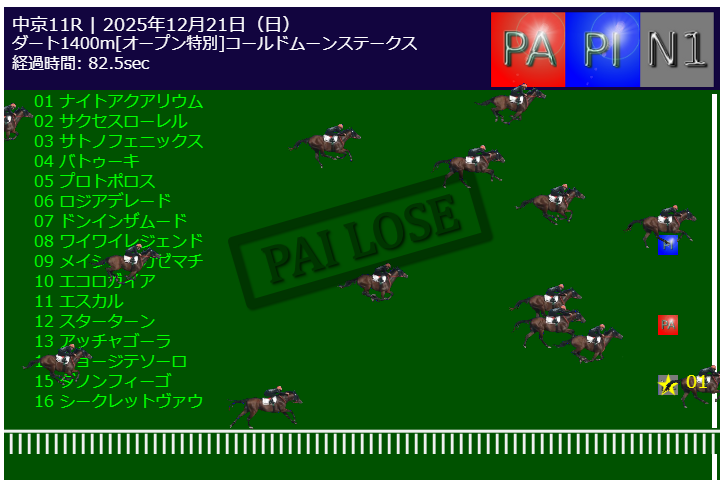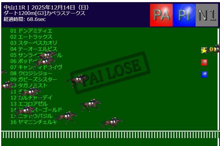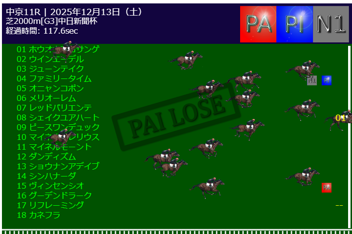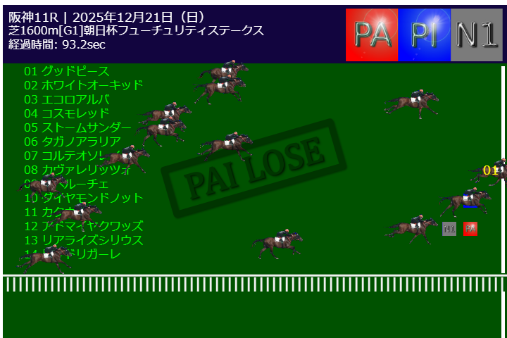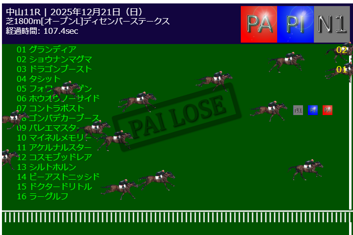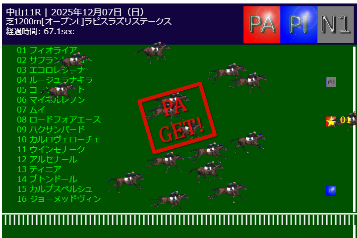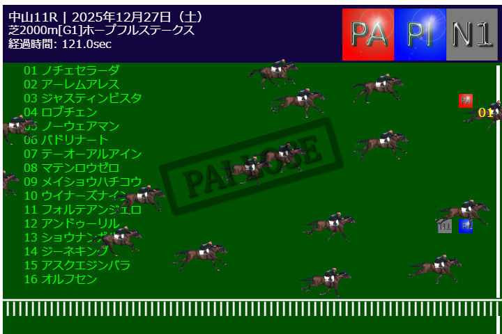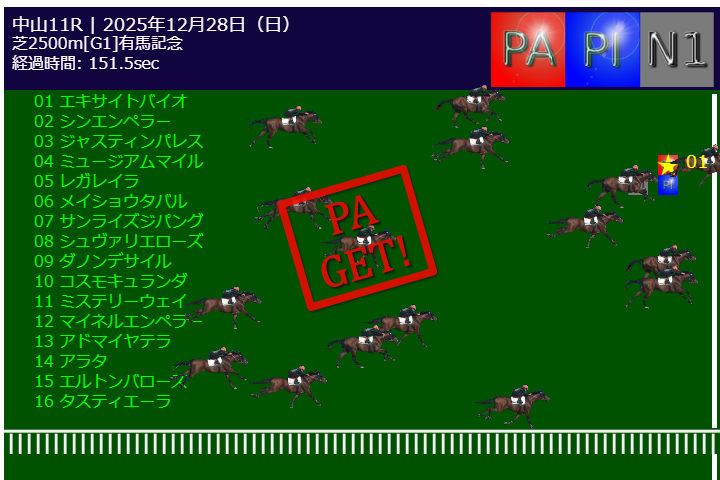 本日PA予測エンジンは中山11R有馬記念G1で的中しました。