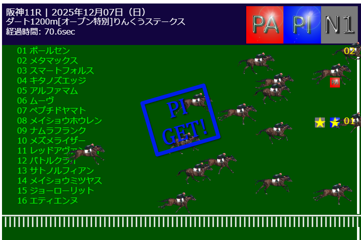 本日PA予測エンジンは中山11Rで的中しました。PI予測エンジンは阪神11Rで的中しました。