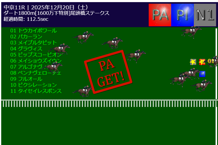 本日PA予測エンジンは中京11Rで的中しました。