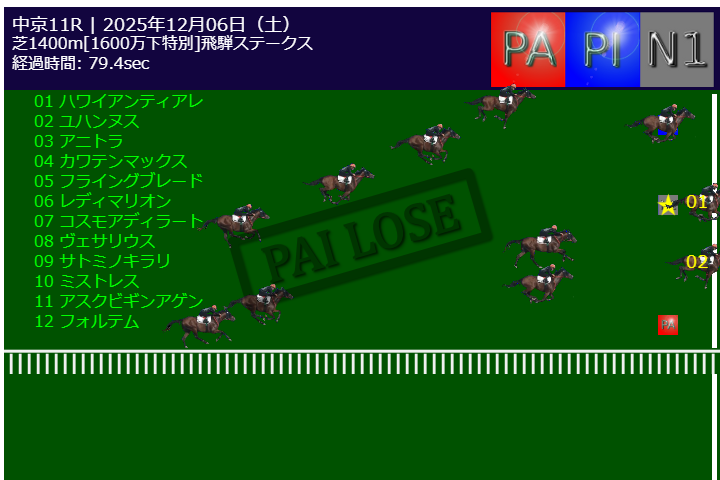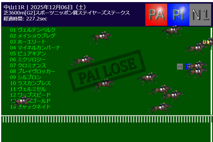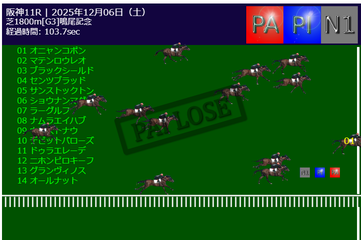 ご注意:画面はゴール通過時の着差をイメージ化したものであり、その内容を保障するものではありません。確定情報については必ず主催者発表のものをご確認ください。