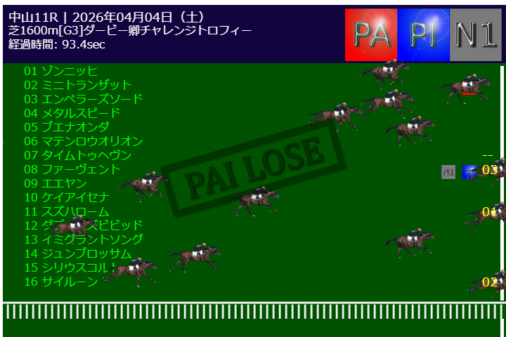 ご注意:画面はゴール通過時の着差をイメージ化したものであり、その内容を保障するものではありません。確定情報については必ず主催者発表のものをご確認ください。